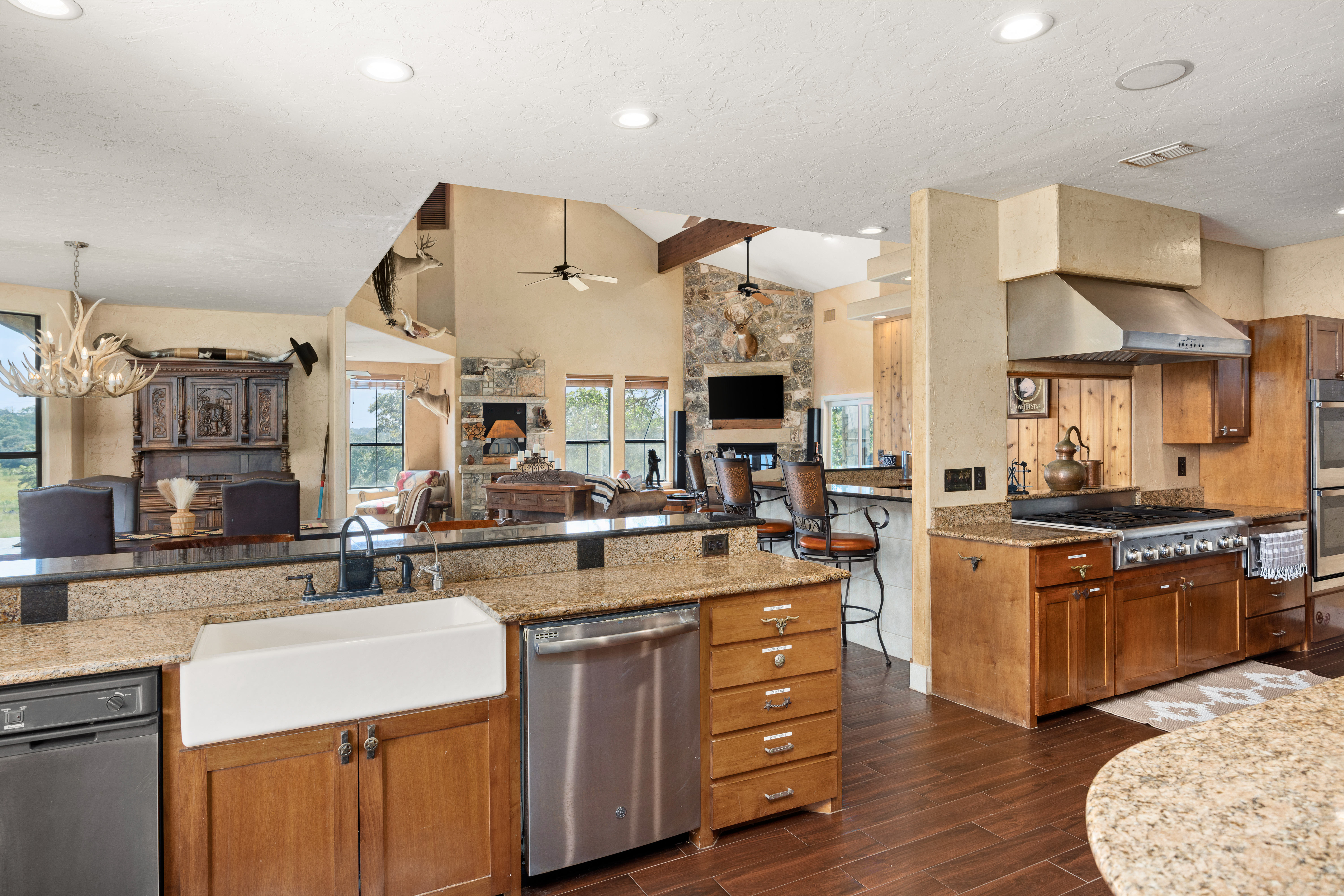 • 5,569 sq ft mission-style lodge (4 bedrooms, 4 full bathrooms)